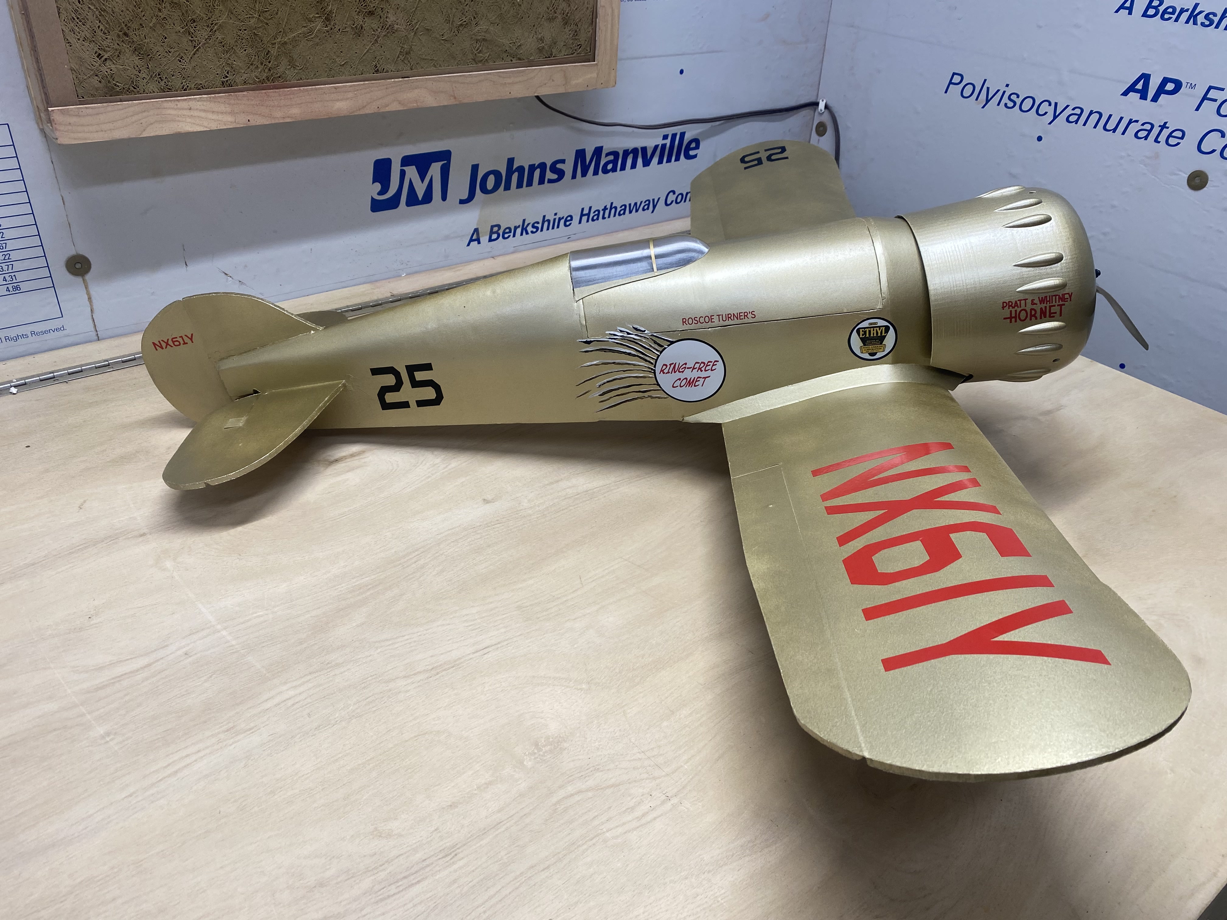 Roscoe Turner's Ring Free Comet Wedell-Williams Model 44. This is a master series style build with 3D parts - zip file included. Flies well with a power pack C and 2200 3S battery.