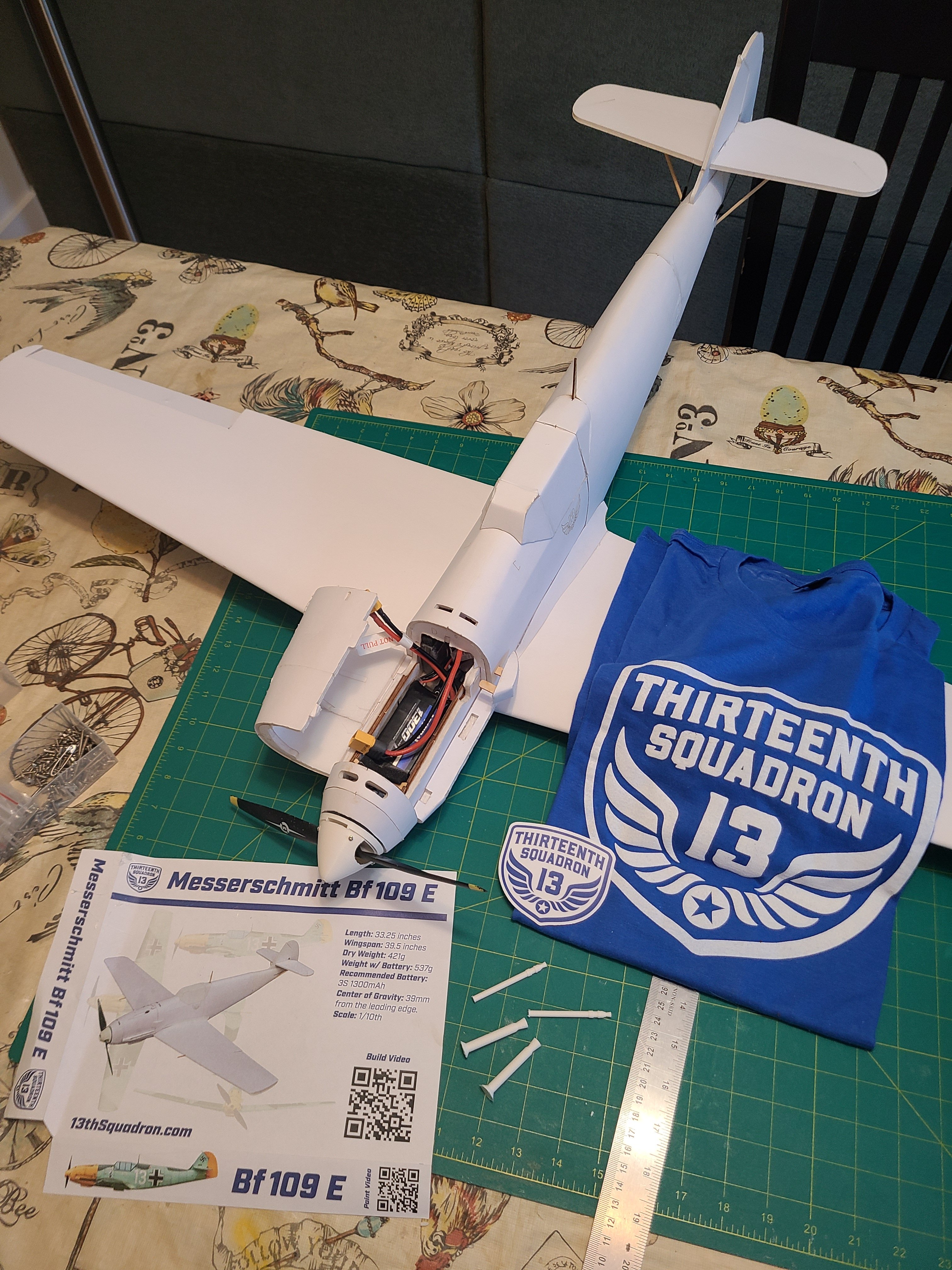 Just finished with 13th Squadron's first production kit. What a treat! Their Me-109e is perfect sized for smaller field flying. If you've never built one of their planes before, you should know that Jack and Steve Niezgoda do amazing things with foamboard.