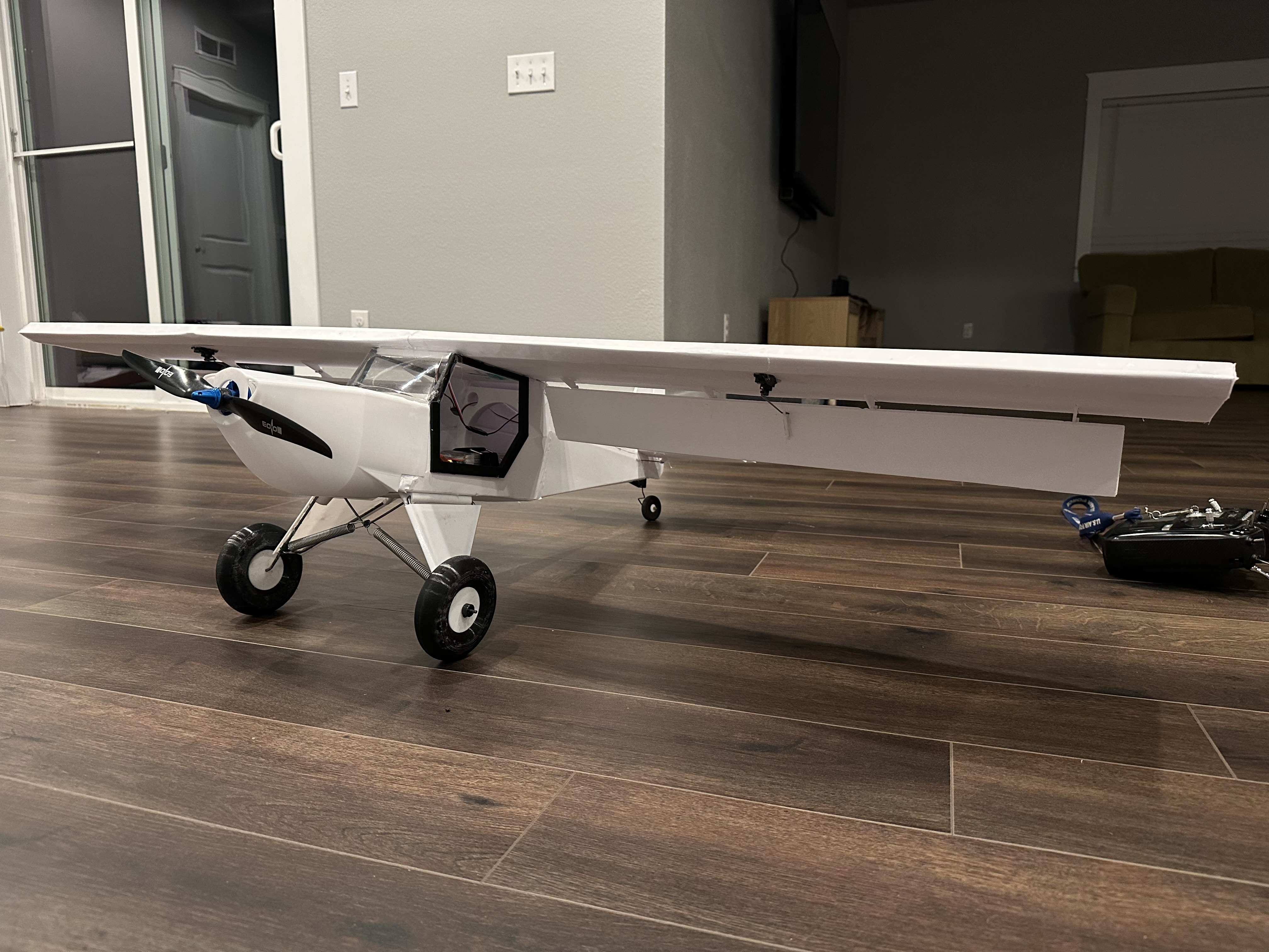 I powered it with a Sunnysky 3120 780kv motor paired with a 60A ESC and 12x6.5 prop. Unfortunately, fall arrived in full force today with wind and rain, so the maiden flight is on hold. Fingers crossed for better weather later this week!