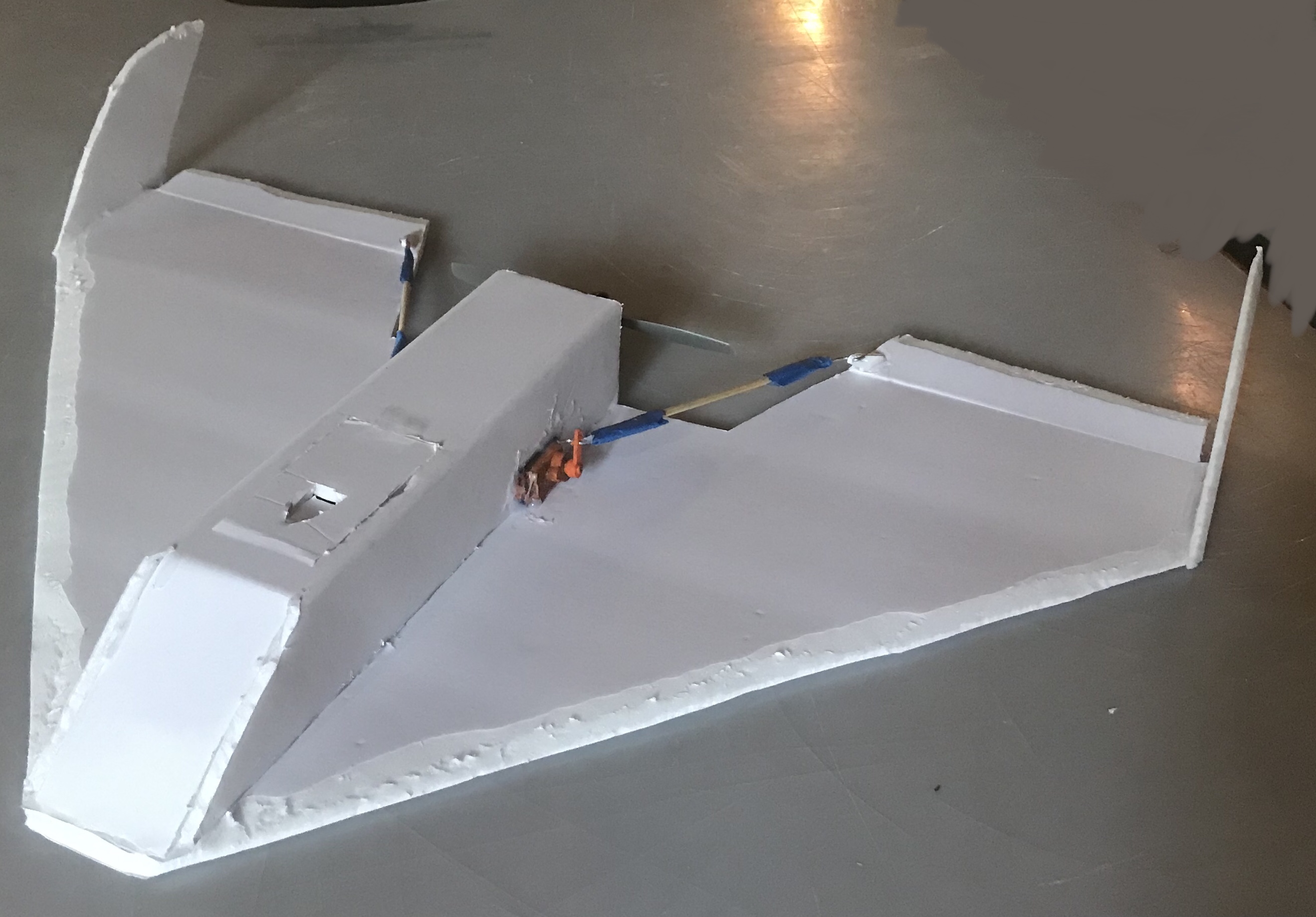 Motor faired into BWB(center rear) and with matching FAI prop, it should GLH.
