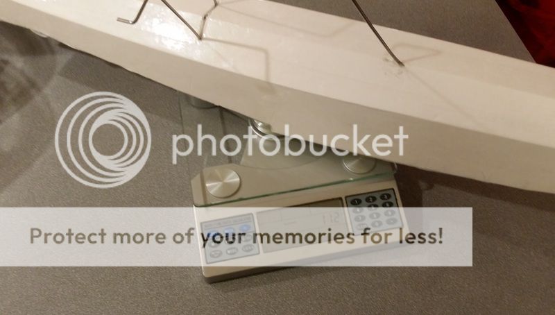 112 grams for this giant one. Not bad considering. It's less weight than a Go-Pro which this plane would handle without blinking. I over used hot glue on one of the mounts cause it was hard to get to on the prototype. That's fixed for the new method. I also only had really heavy wire. If I had piano wire or something stiffer I could go with smaller gauge stuff.