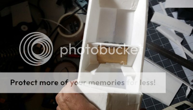 It's also not that hard to build now that i've worked out the bugs. I think if I draw out some good foam gauges to help line parts up the build will be very fast. There aren't that many pieces, and aside from the big pieces it's mostly straight lines. Everything gets coated with packing tape, and with the internal structure and hard wood mounts on the interior it is incredibly strong.