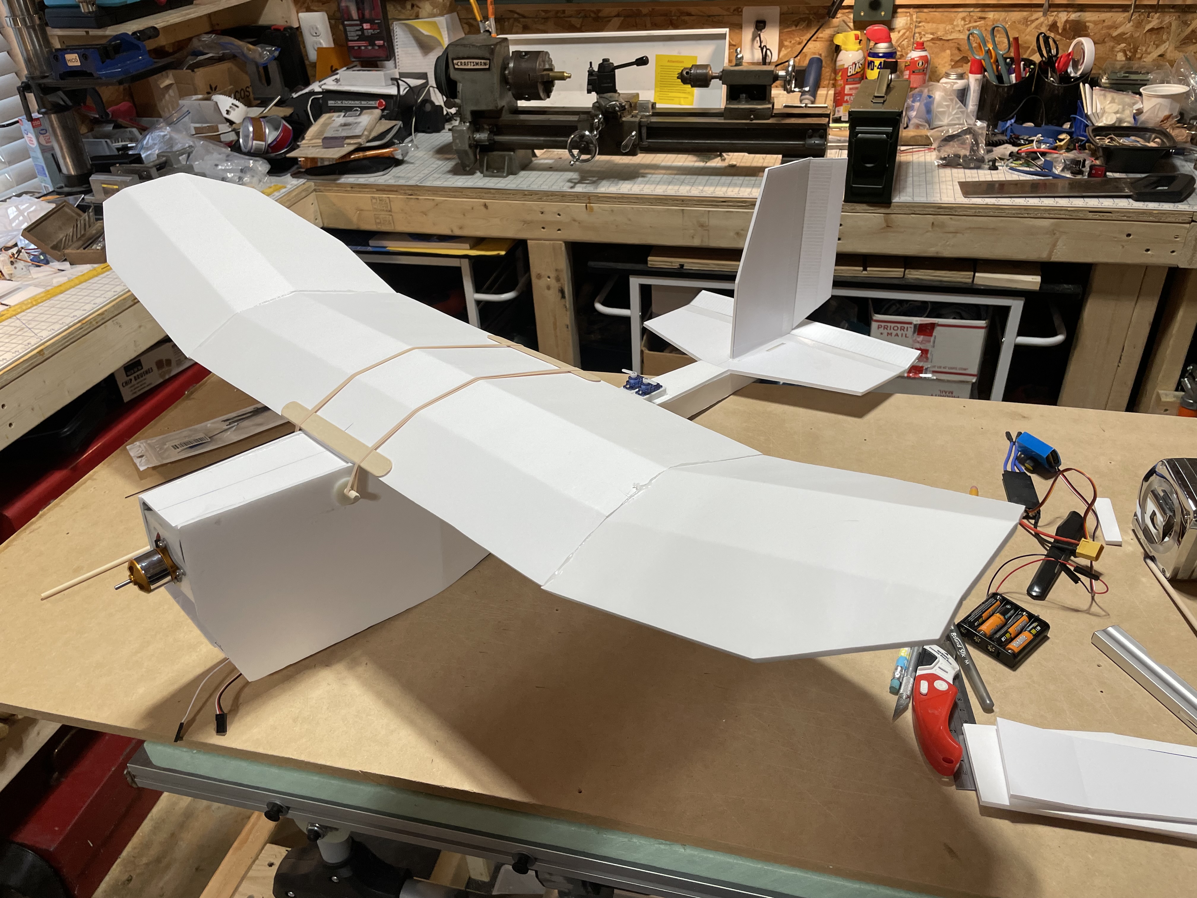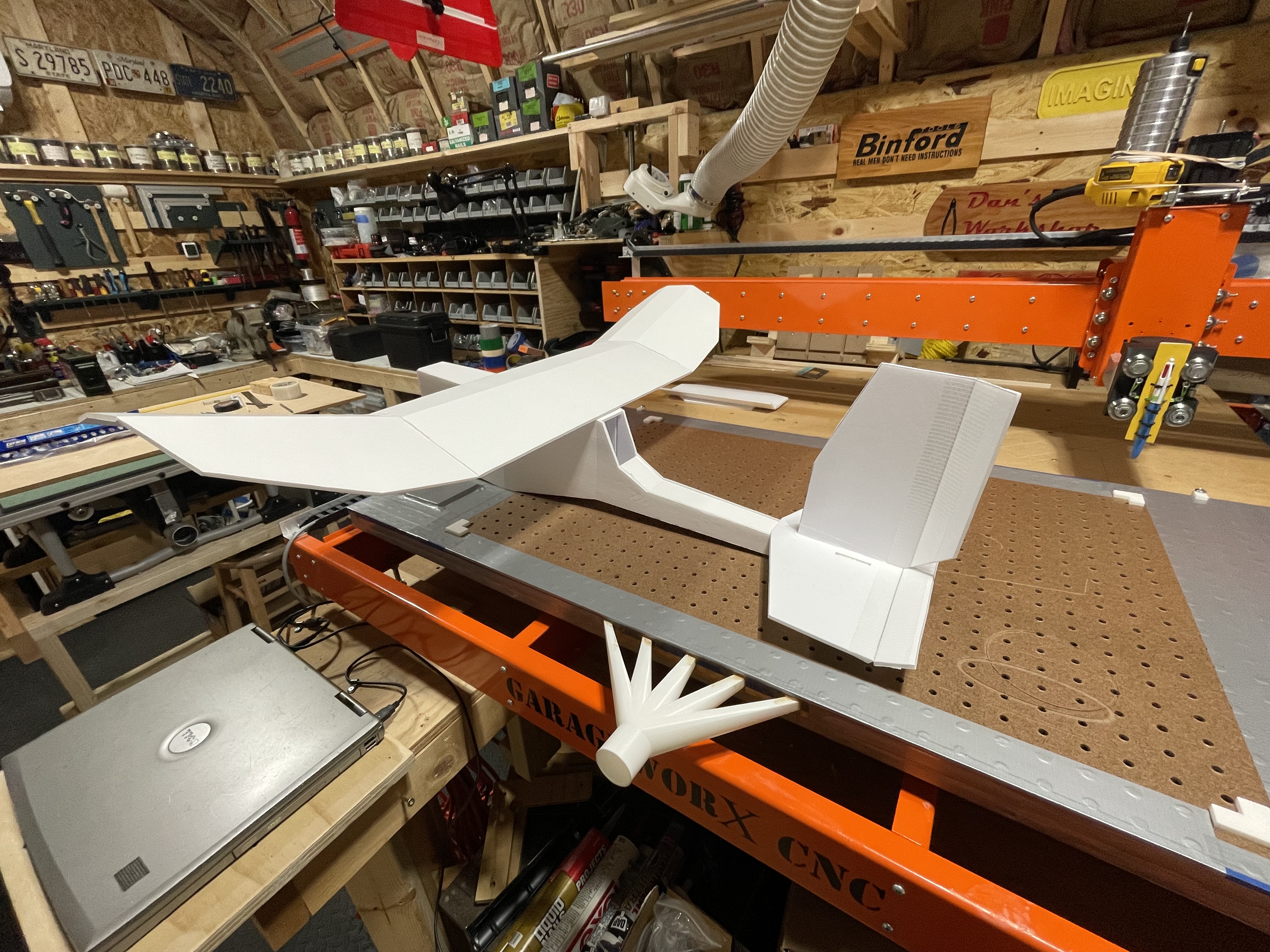 Too cold to be outside so…stay in the heated shop and make a foam board rc airplane! Still need to get the electonics in. Found the plans online. Used the cnc as a pen plotter with a 3d printed holder to mark the parts and then a utility knife to cut them out (much cleaner than using a router end mill). Add a diy vacuum table and we’re good to go! Fun stuff.