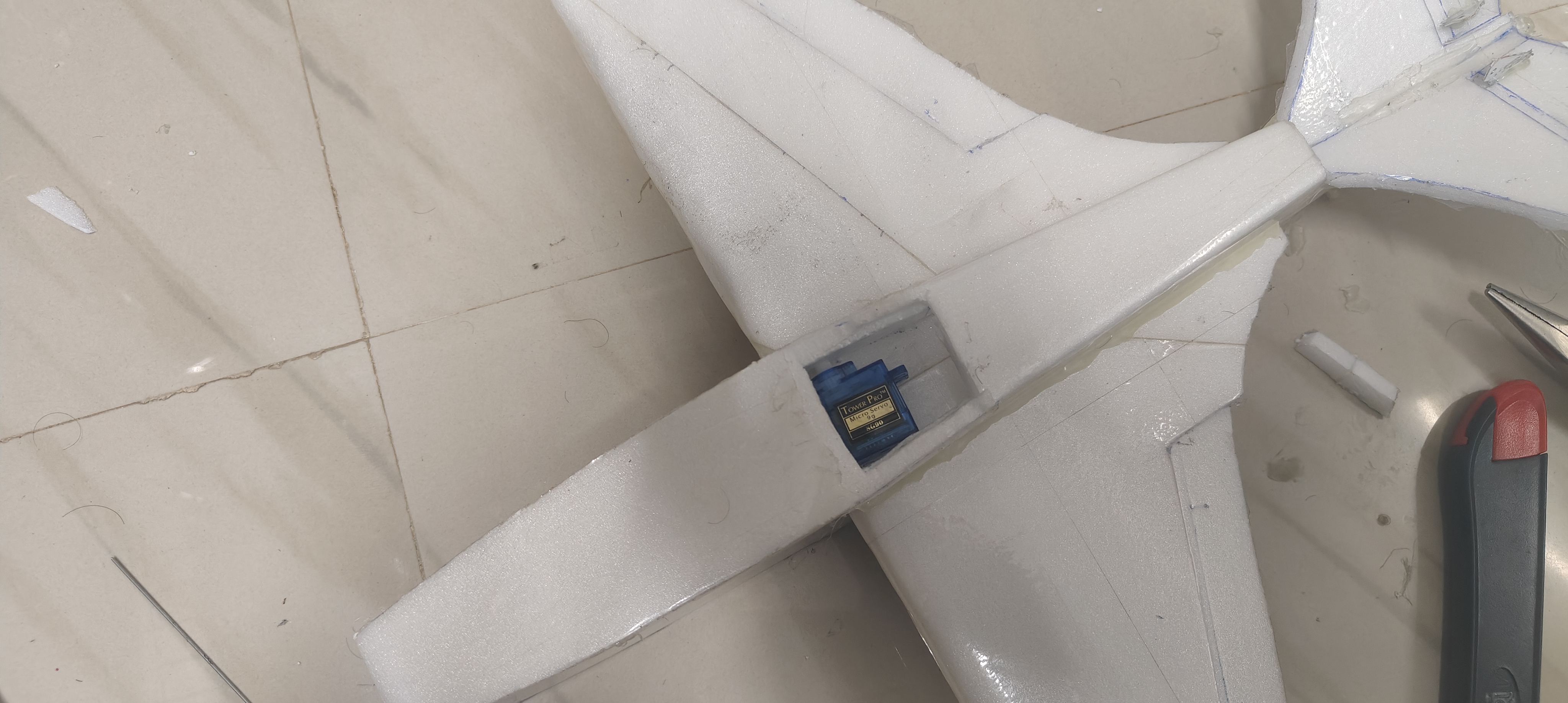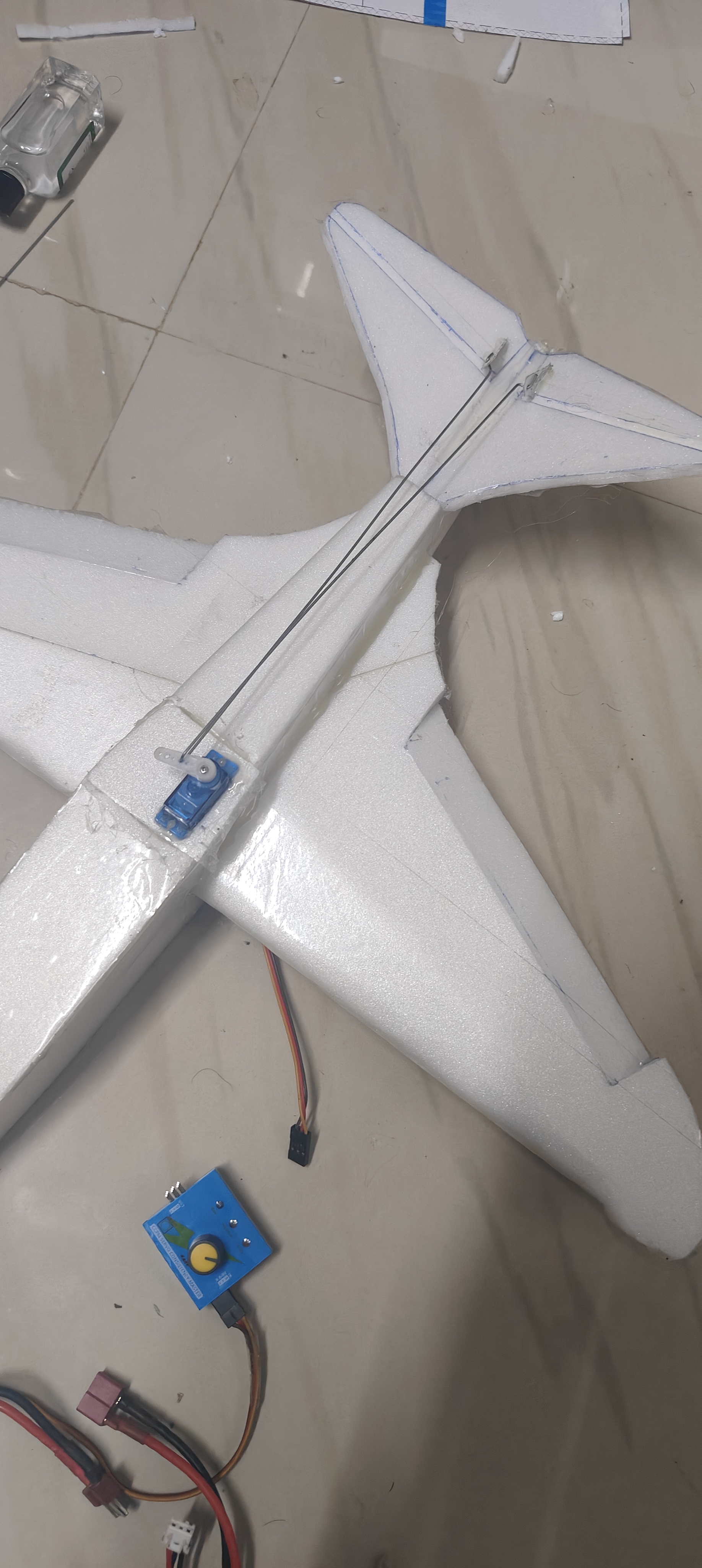 As an immediate solution i placed this servo perpendicular to the fuselage by cutting-out in the centre of fuselage just above the CG location.