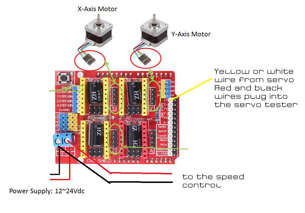time for some troubleshooting. do you have a voltmeter? Check the voltage from your power supply to the cnc shield. If you are powering the unit through the black connector on the uno, then you have probably burned up a diode next to the connector, All is not lost as you can power through the blue connector on the cnc shield and this is how it should be done in the first place . Next up, disconnect the cnc shield from the uno and see if the uno will communicate with the computer. If that works, then re-attach the cnc shield and remove the stepper drivers and see if the uno still talks to the computer. Then attach one driver at a time and see what happens. If a driver causes the problem you will need to replace it. You can easily blow a driver if you move the rails and cutter head by hand as the motors then act as a generator and send voltage back down the wires to the drivers. Also "Tis the season" for static and the smallest static shock that you feel is about 5000 volts and the real good snaps with a spark can be 30000-60000volts and you are feeding it into a chip that runs on 3.3volts. The good thing is the electric stuff like the uno and drivers are cheap, the cnc shield is pretty bulletproof as are the stepper drivers. The power supplies generally are switching power supplies and shut down if they find a short circuit. One more thing to check is the speed controller which can be tested by powering directly and using the servo tester to run it. The servo tester can also be used to test the servo but you will have to connect all 3 wires to the tester. Remember that troubleshooting is a bunch of " divide and conquer" and just test one thing at a time. BTW I was a master tech for Konica Minolta copiers and did this ** for 25 years!