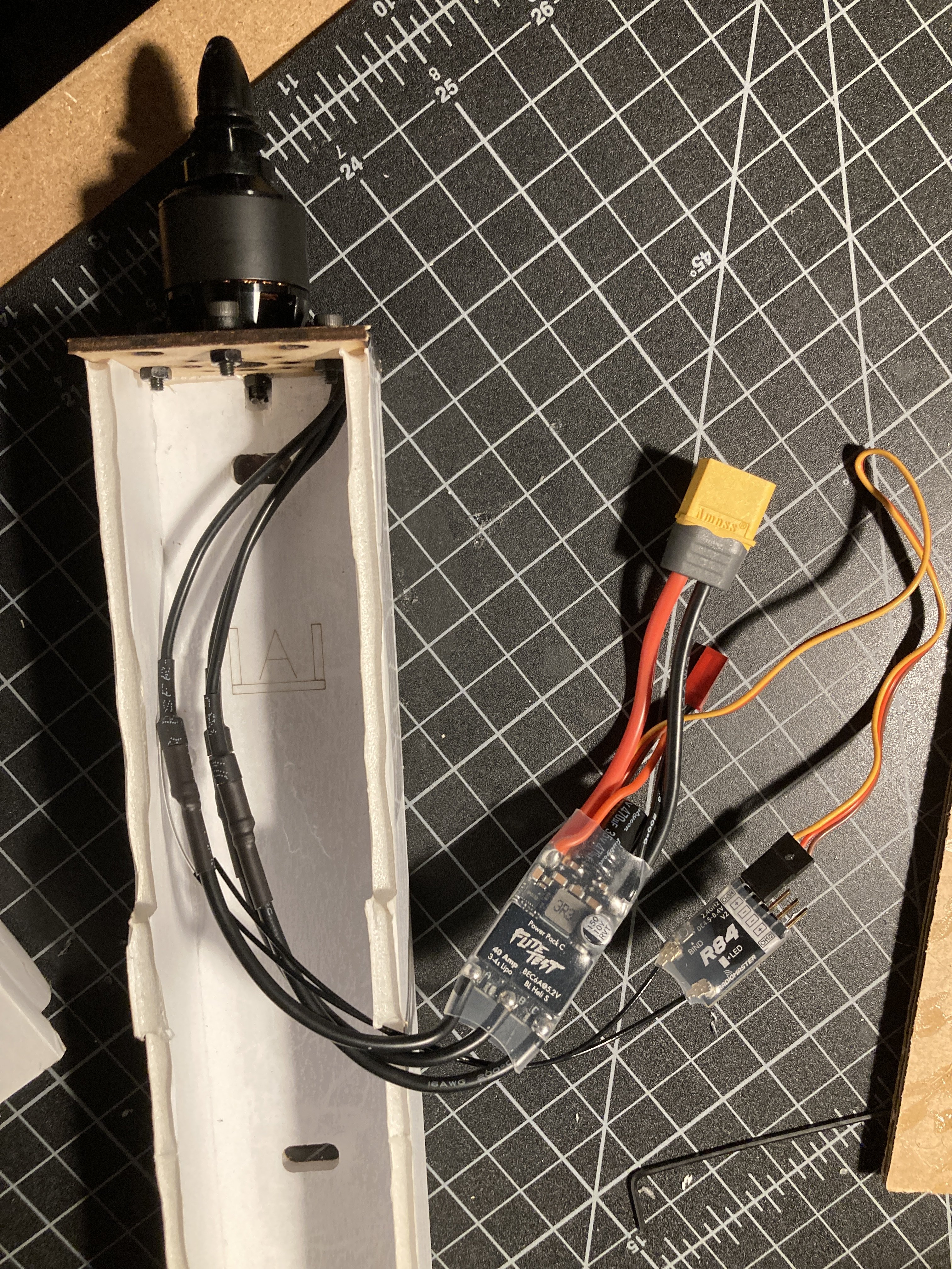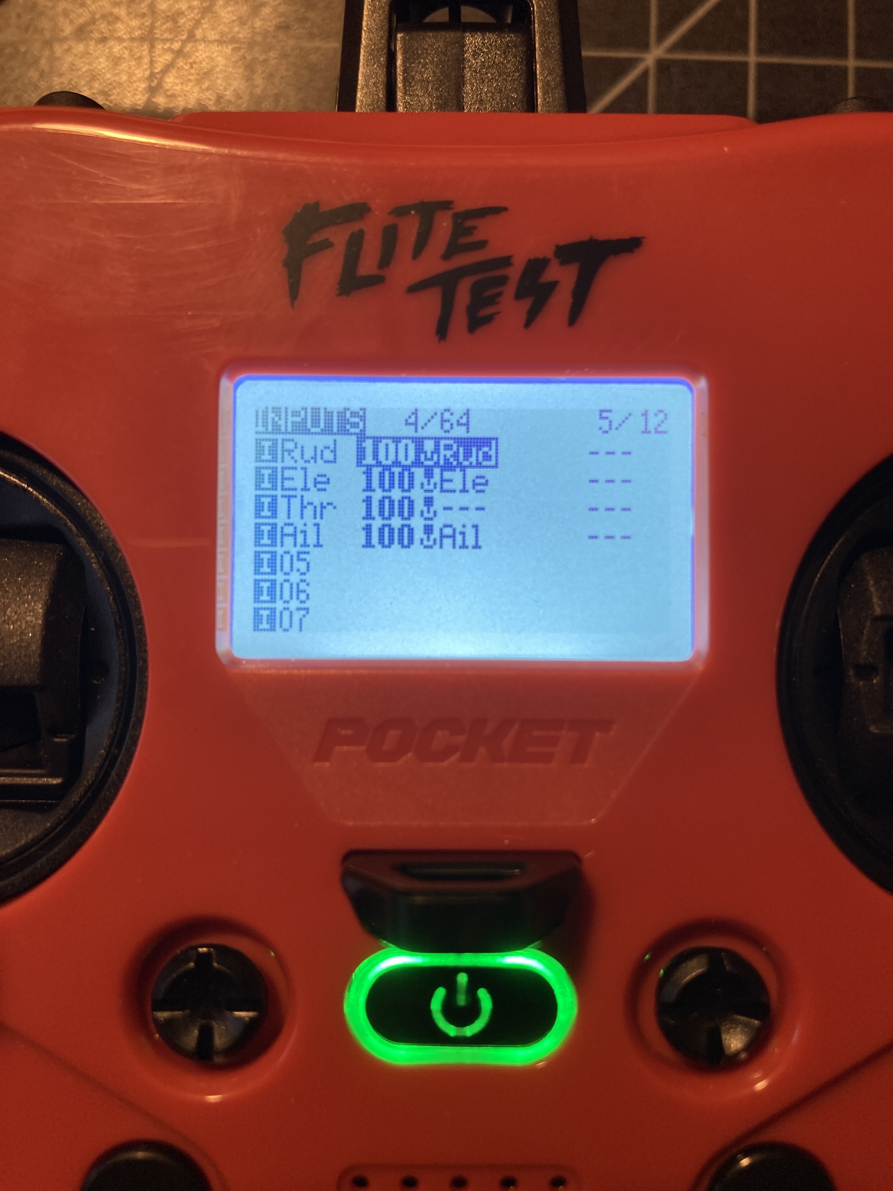 I got a FT Tutor starter kit for christmas. The build has been going great, but my ESC is not acting right. The ESC is the Power Pack C version, and I have a Flite Test motor labeled 2212-1250KV. I was able to pair the R84 v2 receiver with the Pocket CC2500 transmitter, and the servos work fine. The problem is with the motor. When plugging in the ESC with all controls at 0, it does the normal turn-on beeps, but then goes to a 4-beep increasing tone a few times before stopping. The throttle does nothing, the ESC just beeps twice repeatedly when I put the stick higher than the midpoint. In "calibration mode" by moving the throttle to the top, it connects just fine, with the normal starting beeps, but the top part of the stick travel does nothing. After the midpoint on the way down, it ramps up before falling back down at 25%, and ramps up again maxxing out at 0%. I haven't modified any of the firmware on the controller yet, as I wasnt sure if I would lose the presets it has in it.