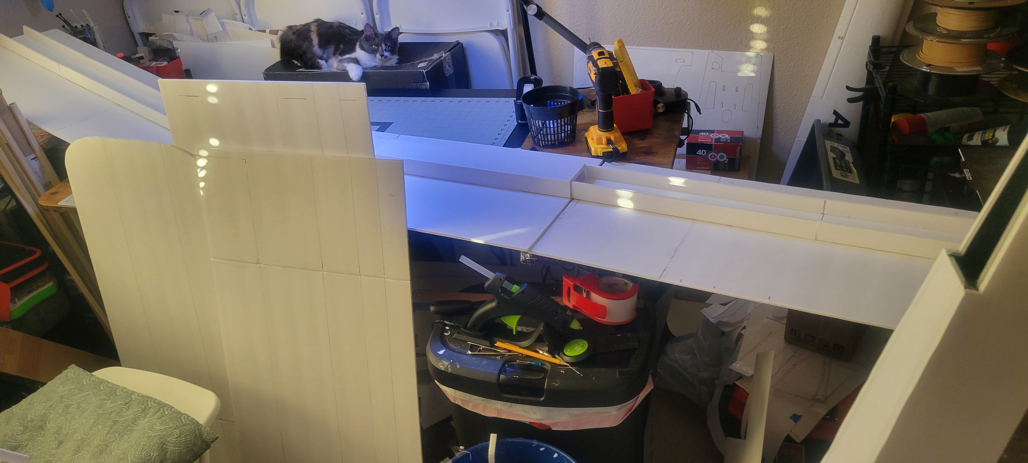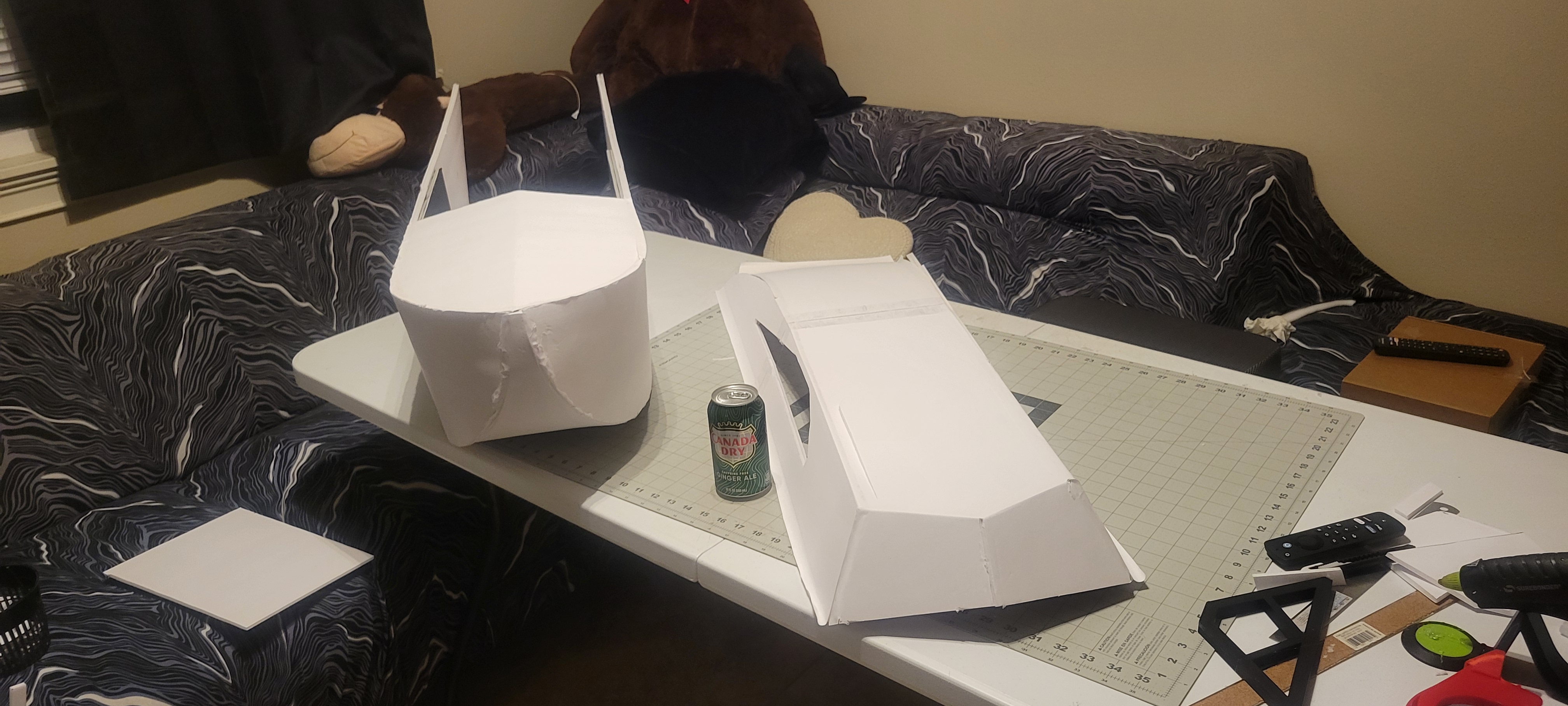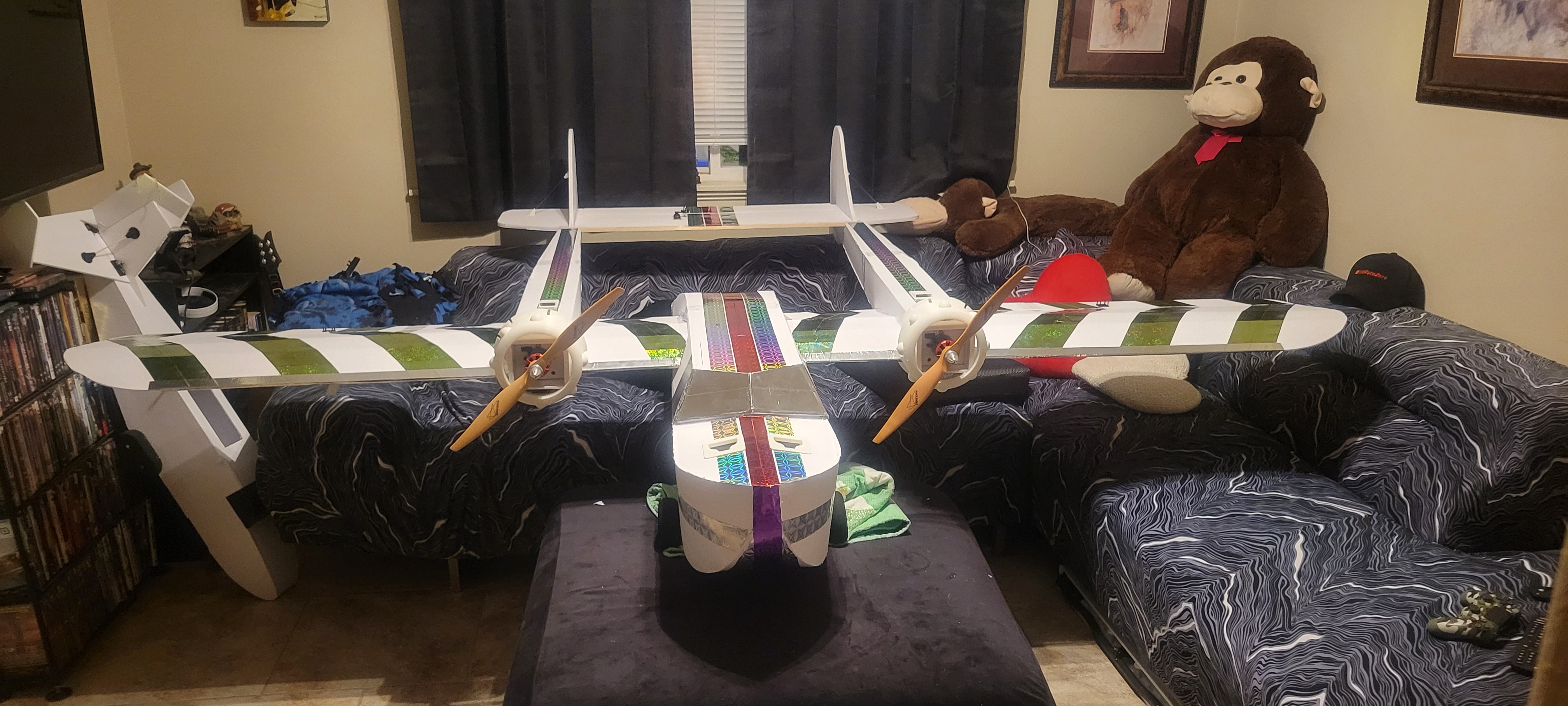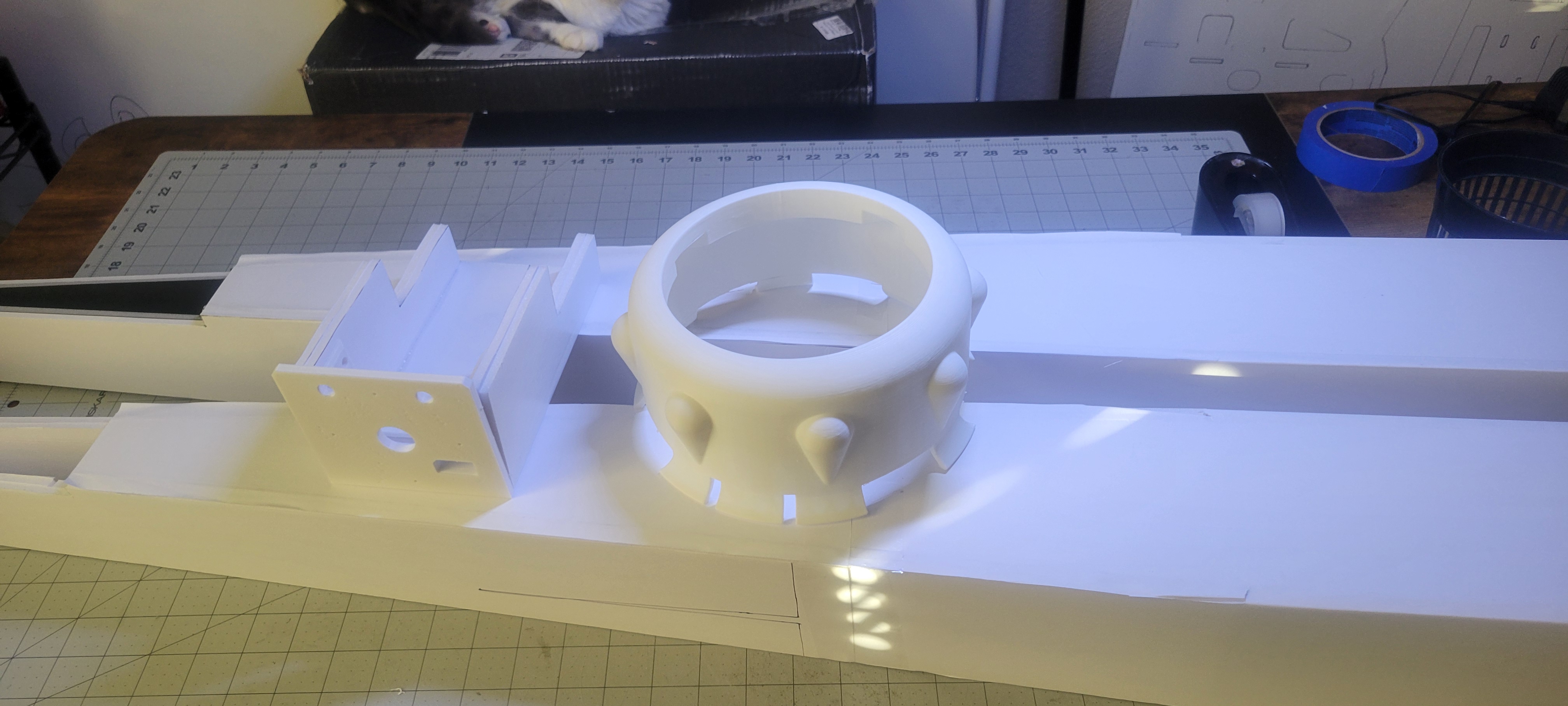 Got the wing cut out and started. Didn't finish it cause I want to give some more thought into strength, and how to connect the three pieces. So went on to build the two tail booms. Since I'm out of foam until 1st of December, gonna make the wiring and build a thrust stand. Pretty smooth going so far (knock on wood).