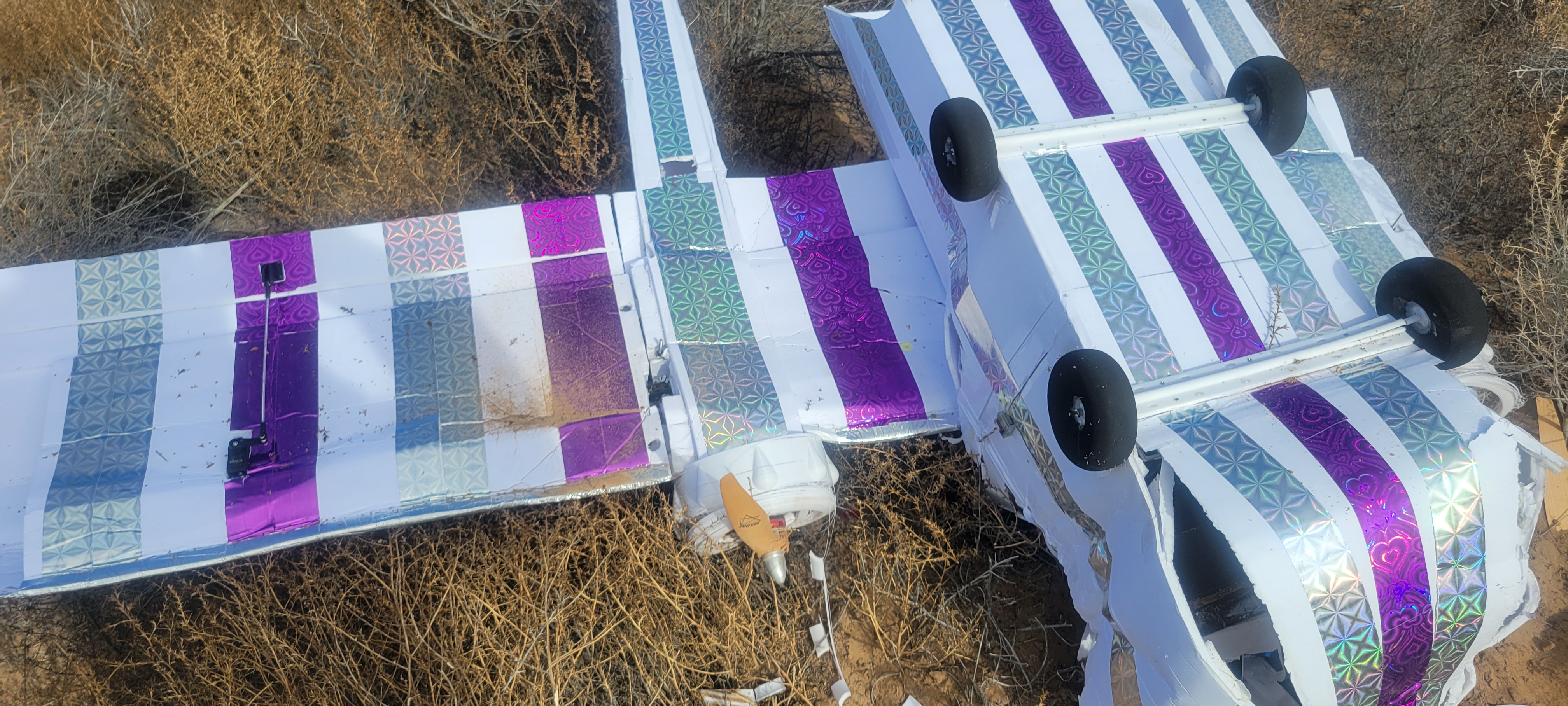 Between the laughing and crying we both lost track of it (it was quite the floater). Got tired of dodging the catus and tumble weeds so gave up at first. Went home and got my drone and found it right away. Surprised how far away it was from the crash site.