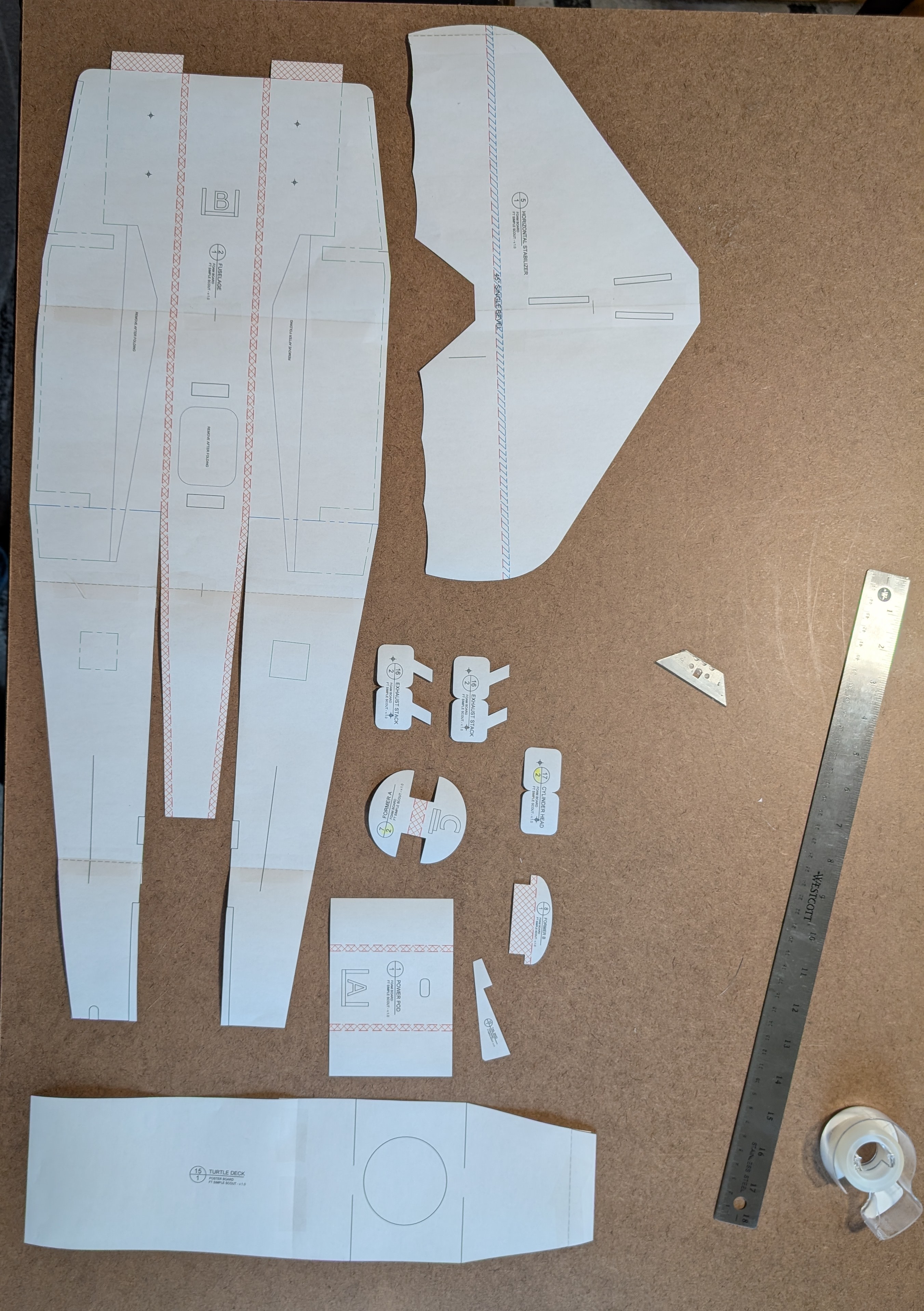 I got more work done this evening, getting the rest of the paper templates cut out. Then spent time practicing bevel cuts. Marking a line to follow did seem to help. But I think the practice helped the most.
