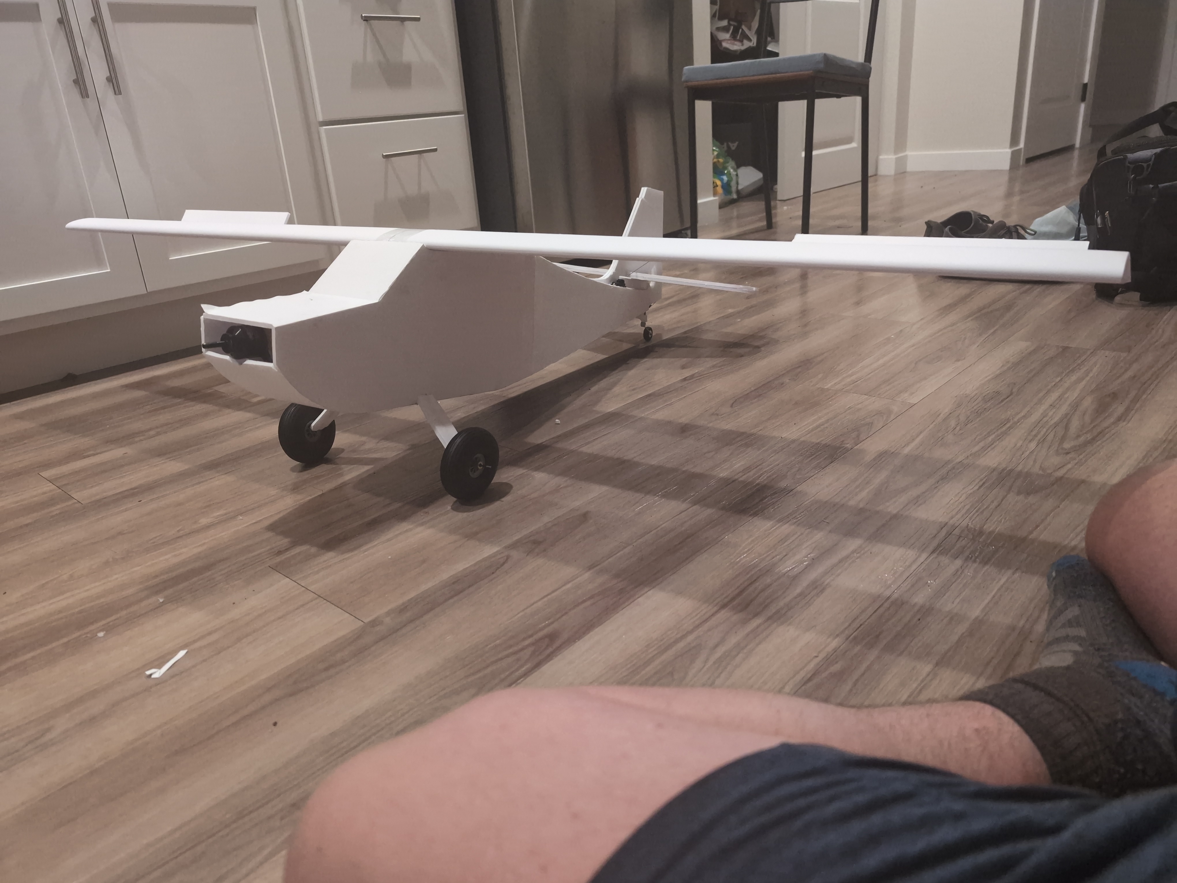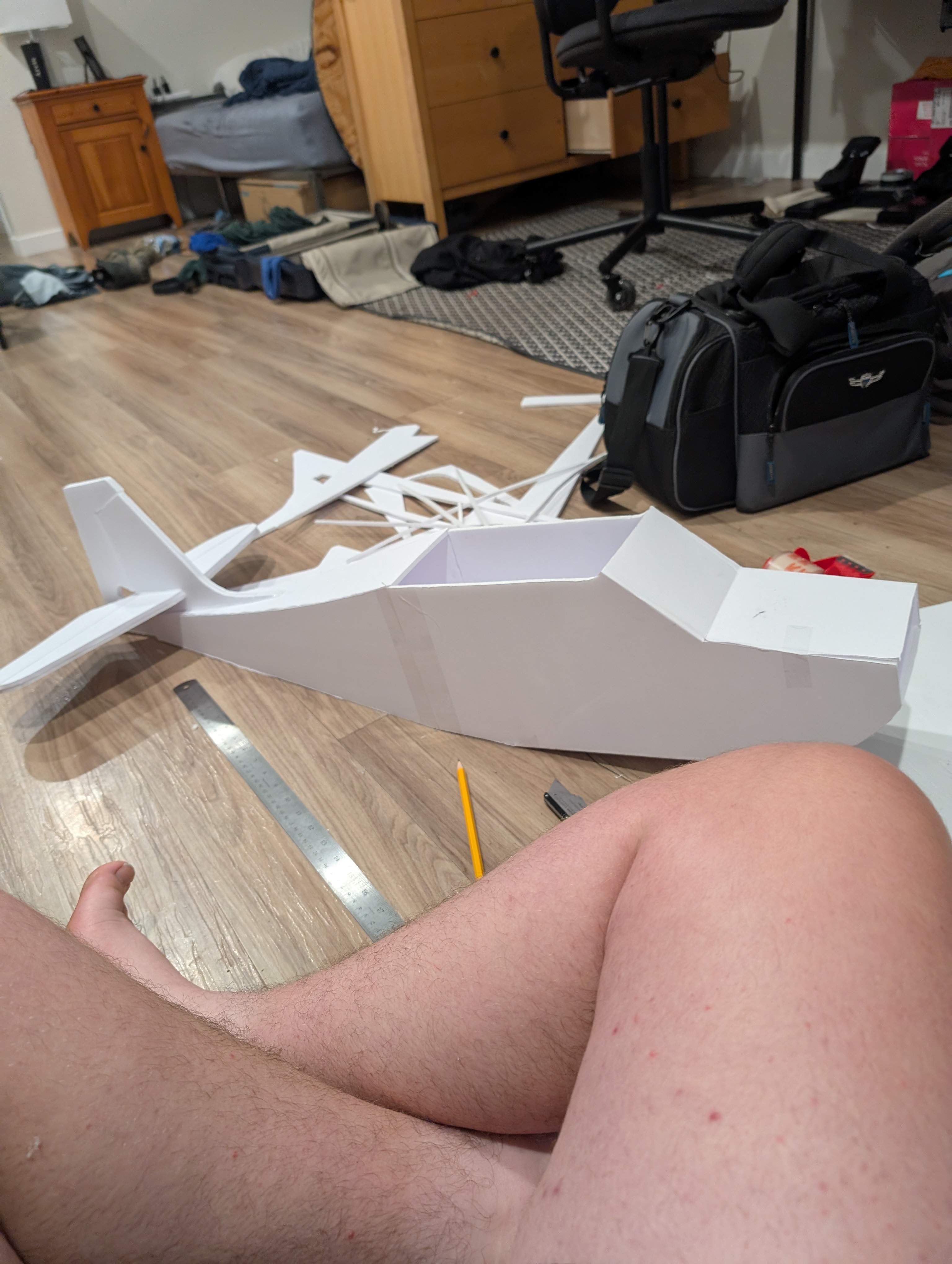 I originally tried to design it using Fusion360's sheet metal tools, but after much wailing and gnashing of teeth I decided to move to 2d, and I was able to knock up a plan for the fuse, and the wing I'll just do based on some dimensions (The plans are woefully incomplete btw, but it's enough to start for me). I sized the wing to be a similar size to my old funcub because I like that size of plane, and I have the motor and rudder servo I used in that lying around. The wings will be detachable, and I'm going to try to use tent poles from what was left of my dad's tent after FF '25 as spars.