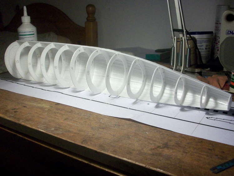 Whom would I be if I didn't practice what I preach though? I already have one EDF design running off a single 64mm 10 blade fan, running on a 4 cell 2200. While most single 64mm EDFs get about 3.5 minutes flight time on modest power off 2200 mAh my design manages 5.5 minutes flight time on mixed throttle. Its also relatively heavy for its wingspan. Another design is on the workbench, this time using two 64mm EDFs to run on 6 cell batteries. The aircraft these motors were taken from also sees only around 3.5 minutes of mixed throttle flight time on 2200 mAh. Time will tell if I can extract better powertrain performance from this design as well